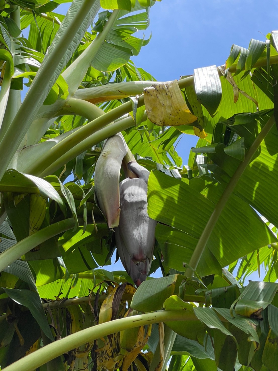 収穫のタイミングまで育ったアップルバナナの木にたどり着きました。