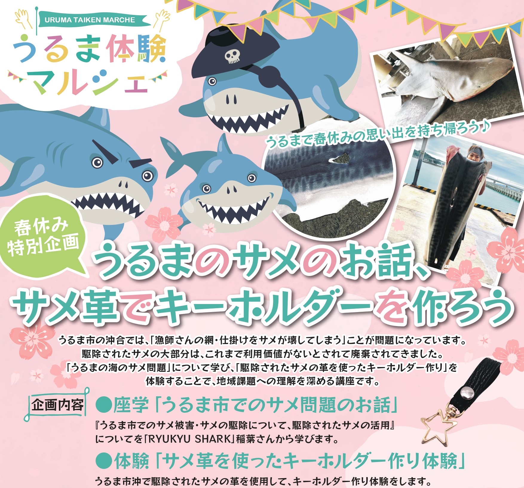 【03/26】うるまのサメのお話、サメ革でキーホルダーを作ろう!