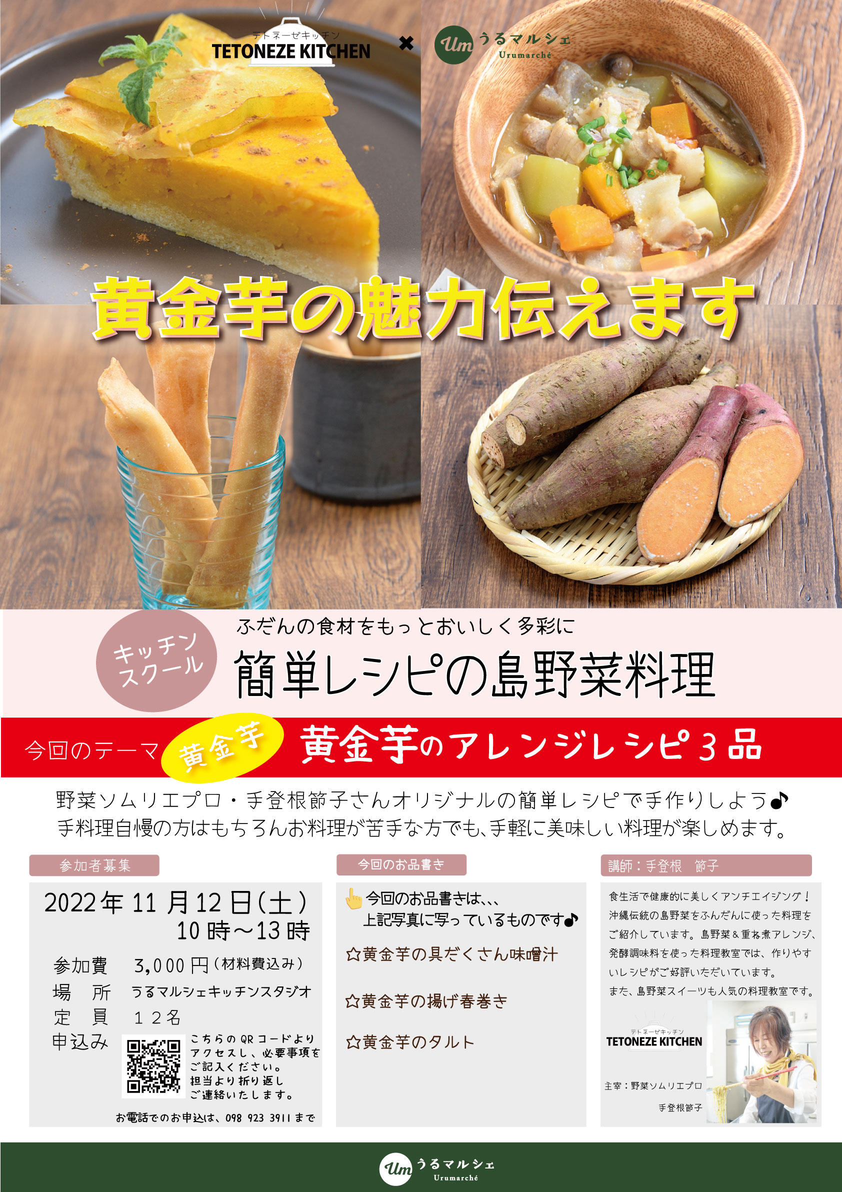 手登根節子の簡単レシピの島野菜料理(11/12開催)
