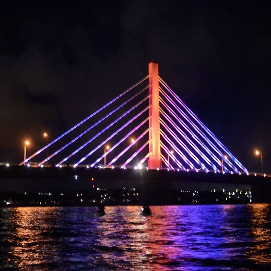 ライトで照らされた「あやはし」は、海から見るとより綺麗な絶景の夜景スポット。夜の海ならではの「静けさ・涼しさ」を体感できます。満天の星空と月明りを頼りに、夜の海に漕ぎ出そう。