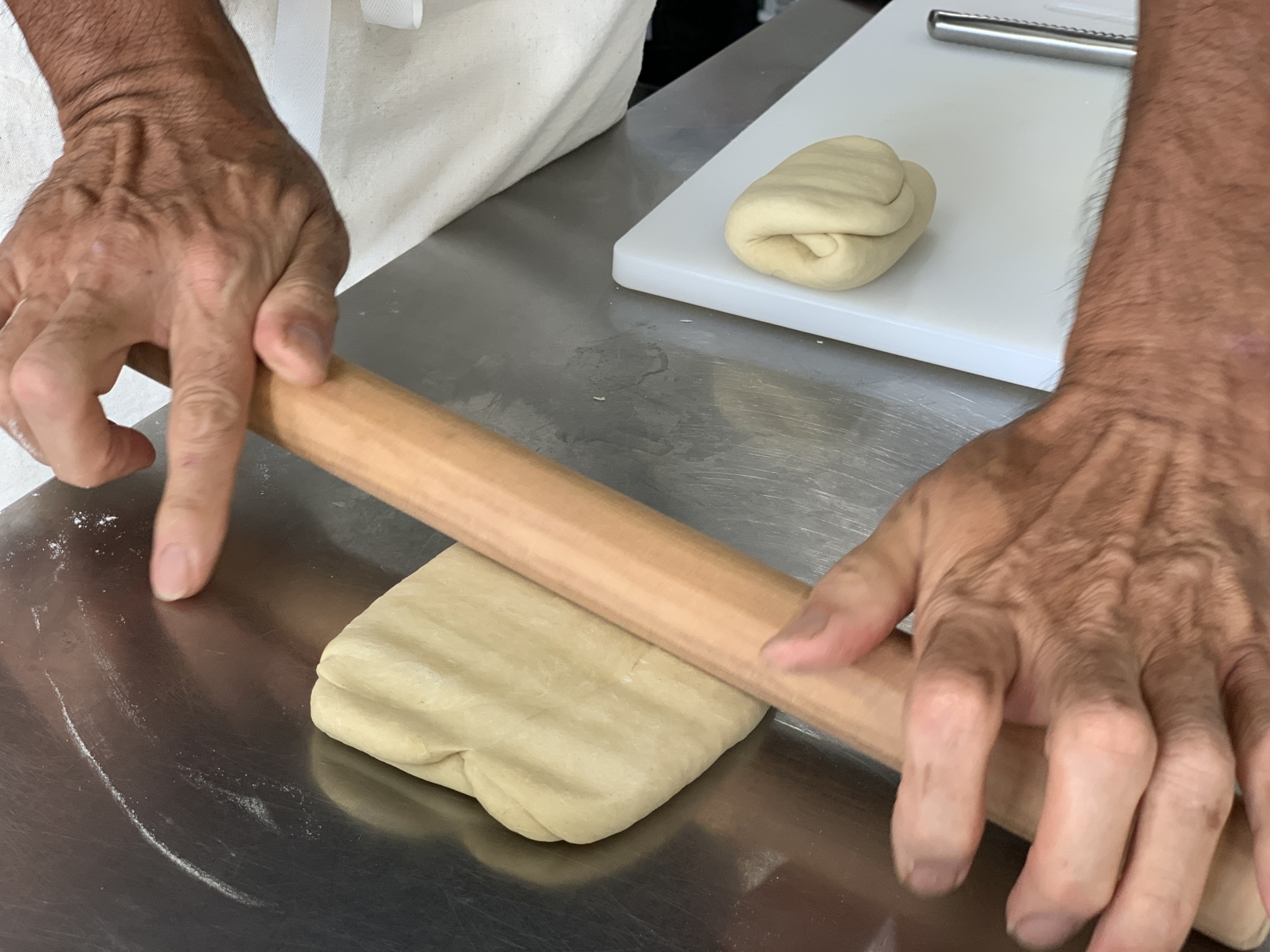 季節の島野菜を混ぜ込んだペイストリーの土台は、「島麦かなさん」を配合した生地。
