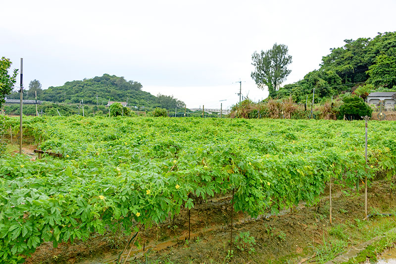 1000坪ほどの畑でゴーヤーを栽培しているほか、オクラ、ヘチマ、枝豆、島唐辛子、パパイヤなど、沖縄らしさ溢れる野菜をいくつも作っています。