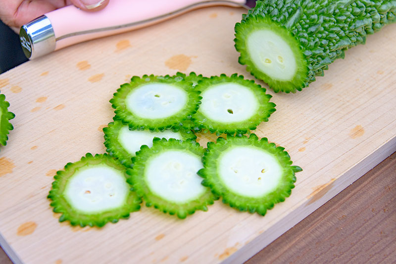 この日、古謝さんの畑にご一緒した野菜ソムリエプロの手登根節子さんによると、「ゴーヤーの苦みはモモルデシンという物質によるもので、食欲を増進する働きがあるんですよ」とのこと。昔から食欲の落ちやすい夏に、ゴーヤーがよく食べられてきたことに改めて納得!