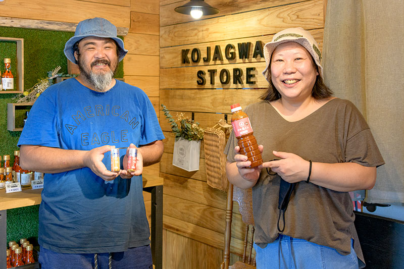 家族の力を集結! 父の跡を継いで沖縄ならではの農作物づくりに精を出すかたわら、母の味を受け継いだ調味料を手作り販売する「古謝ぐゎー商店」を妻とやってます!